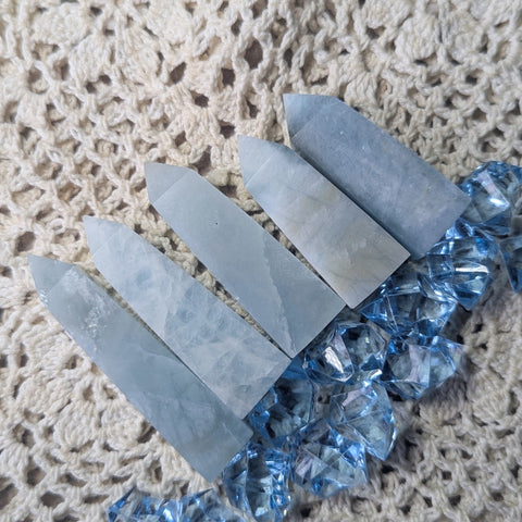 Aquamarine (blue Beryl) Mini Generators~CRAQMG20. Aquamarine is known for its ability to stabilize and harmonize unsettled surroundings. It filters out unnecessary information, sharpens the intellect, and calms the nerves. It is known as a stone of courage, reducing fears, and is especially helpful for sensitive people. It sharpens intuition, better enabling you to interpret your emotions. It increases creativity and brings about a tolerance of others, emitting a gentle and compassionate energy supporting moderation. Aquamarine aids deeper meditation, quiets the mind, and brings about a tolerance of others. It will also help to attune you to nature and to more spiritual levels of awareness, enhancing connection to source/creator. It is known to bring order out of chaos to people feeling overwhelmed by responsibilities, like the weight of the world is on your shoulders. It lends one the courage and clarity to express one’s inner knowing. It helps free oneself of attachments to old patterns, relationships and ways of being. It can assist those who keep emotional scorecards or grudges to let go of the past. It is an excellent stone for working with grief, as it assists one in fully releasing attachment to the body of a loved one, while retaining a positive emotional connection to the loved one’s spiritual being. It helps one understand where one is holding on to emotions, communication patterns, or thoughts that are limiting one’s ability to “go with the flow”. It can help one identify where ego is causing one to overreact, assume a victim, abuser, or rescuer role, act in a passive-aggressive manner, manipulate others, or martyr oneself. By identifying these patterns and consciously releasing them, one can raise one’s relationships and communication to a level that is more reflective of Divine Love and compassion. It also assists one in clearing patterns caused by past emotional, physical or verbal abuse. It is an excellent stone for people who have been through traumatic situations and have disassociated from their emotional bodies. One of the most powerful properties of this stone is in aiding and raising communication to a higher level, and encourages a "go with the flow" attitude. One (1) Aquamarine Mini Generator. Size varies as per pictures.