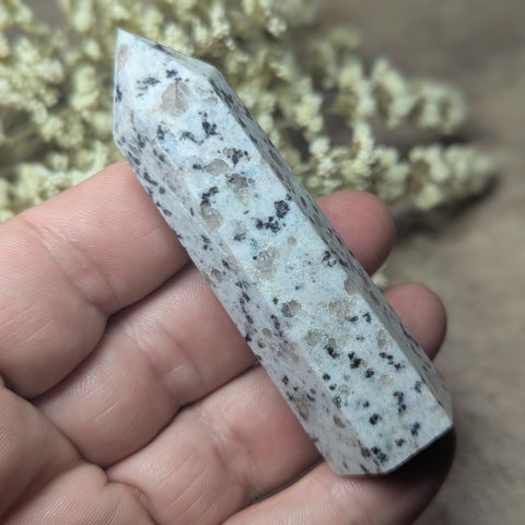 Archangel Gabriel Stone Pillar CRAGWD10. I nicknamed this stone Archangel Gabriel Stone because of its energies of connection to ascended beings and higher wisdom, communication and protection. It is a new find comprised of snow quartz, smoky quartz, blue quartz and black tourmaline. Archangel Gabriel’s name means 'God is my strength'. As the patron of communications, Archangel Gabriel is the messenger angel, acting as a messenger of God. Archangel Gabriel Stone is an energy amplifier, said to bring the energy of the stars into the soul. It is considered a stone of harmony, and is thought to facilitate communication with spiritual and other-worldly masters, teachers, & healers. It can be programmed as a constant prayer or intent generator. It transmutes negative energies in one’s environment. It is a good stone for “keeping things clear” by purging the atmosphere of unspoken resentments or suppressed conflicts. By balancing the Throat Chakra, it enhances communication between upper and lower Chakras, angelic beings, and ascended masters. It also helps to improve one's communication skills, including not only communication with others, but also communication from the ascended to the spiritual self. It also clears the energy systems of any thoughts or psychic debris that could cause blockages or imbalances if allowed to remain. It is a process of "energetic housecleaning" that is vitally important to anyone who strives for connection to their spiritual path. 86mm x 27mm x 23mm