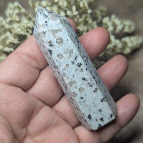 Archangel Gabriel Stone Pillar CRAGWD18. I nicknamed this stone Archangel Gabriel Stone because of its energies of connection to ascended beings and higher wisdom, communication and protection. It is a new find comprised of snow quartz, smoky quartz, blue quartz and black tourmaline. Archangel Gabriel’s name means 'God is my strength'. As the patron of communications, Archangel Gabriel is the messenger angel, acting as a messenger of God. Archangel Gabriel Stone is an energy amplifier, said to bring the energy of the stars into the soul. It is considered a stone of harmony, and is thought to facilitate communication with spiritual and other-worldly masters, teachers, & healers. It can be programmed as a constant prayer or intent generator. It transmutes negative energies in one’s environment. It is a good stone for “keeping things clear” by purging the atmosphere of unspoken resentments or suppressed conflicts. By balancing the Throat Chakra, it enhances communication between upper and lower Chakras, angelic beings, and ascended masters. It also helps to improve one's communication skills, including not only communication with others, but also communication from the ascended to the spiritual self. It also clears the energy systems of any thoughts or psychic debris that could cause blockages or imbalances if allowed to remain. It is a process of "energetic housecleaning" that is vitally important to anyone who strives for connection to their spiritual path. 94mm x 30mm x 25mm.