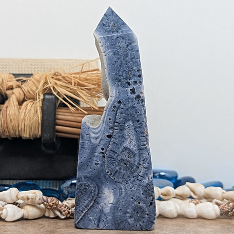 Blue Coral Generator~CRBLCR03. Blue Coral (Heliopora coerulea) is a species of colonial coral. Iron salts give the skeleton of Blue Coral its unique color. Blue Coral is found in the eastern and western Indian Ocean, and the eastern central, western central, northwestern, and southwestern Pacific Ocean. Blue Coral haven’t changed in their form for over 60-70 million years. Blue Coral can activate & energize the throat chakra, act as a cleansing agent for the sacral chakra, & illuminate the third eye enhancing the psychic awareness & capabilities of the user, facilitates improvement & permanence in ones pursuits of commerce & in the maintenance & accrual of the tangible & material, acts to stimulate the field of “selling”, as well as provide for accessibility to those goods and/or services which one needs in order to “re-stock” or to have expertise readily available, improves ones communicative abilities & can help one to understand and to apply the processes of relating to others via both silent and verbal communication. Edgar Cayce suggested coral for quieting the emotions, said to bring peace within the self, It also is linked with ameliorating forms of mental illness, helps one to both understand & to use the qualities of the mystic; it can bring one into communication with the past spiritual masters or this world & can expedite and accelerate the transfer of knowledge. 99mm x 36mm x 19mm