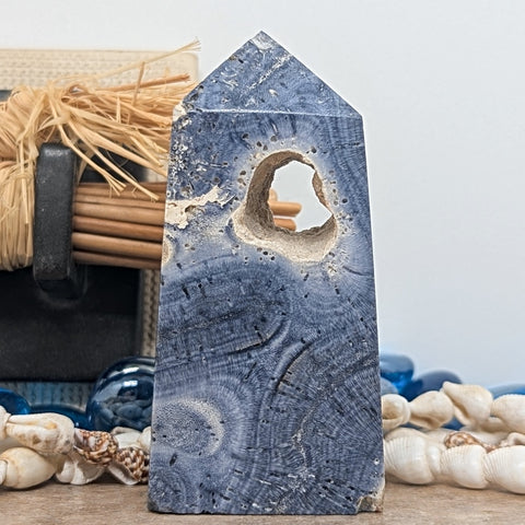 Blue Coral Generator~CRBLCR07. Blue Coral (Heliopora coerulea) is a species of colonial coral. Iron salts give the skeleton of Blue Coral its unique color. Blue Coral is found in the eastern and western Indian Ocean, and the eastern central, western central, northwestern, and southwestern Pacific Ocean. Blue Coral haven’t changed in their form for over 60-70 million years. Blue Coral can activate & energize the throat chakra, act as a cleansing agent for the sacral chakra, & illuminate the third eye enhancing the psychic awareness & capabilities of the user, facilitates improvement & permanence in ones pursuits of commerce & in the maintenance & accrual of the tangible & material, acts to stimulate the field of “selling”, as well as provide for accessibility to those goods and/or services which one needs in order to “re-stock” or to have expertise readily available, improves ones communicative abilities & can help one to understand and to apply the processes of relating to others via both silent and verbal communication. Edgar Cayce suggested coral for quieting the emotions, said to bring peace within the self, It also is linked with ameliorating forms of mental illness, helps one to both understand & to use the qualities of the mystic; it can bring one into communication with the past spiritual masters or this world & can expedite and accelerate the transfer of knowledge. 79mm x 38mm x 20mm