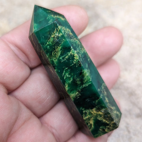 Emerald Generator~CREMGN05. Emerald is the stone which most purely represents the energy patterns of the activated heart chakra. It helps one to live and act from the heart level, offering unconditional love and compassion in one’s daily life and relationships, opening one to receive love from others and clearing the channel for one’s own connection with Divine Love. It can help one to heal “heartbreak”, and to remember to give love to oneself as well as others. An open heart allows the cornucopia of universal blessings to flow into one’s life, and this is why emerald is know as a stone of prosperity. Abundance describes one’s ability to receive the gifts of Spirit within all life’s experiences. It is a sense of opening one’s life to the Divine and embracing all its manifestations with gratitude. True abundance is knowing that all is provided and that there can be no lack in reality. It helps one move forward on the path “with heart”. It brings an energy of hope, encouragement, gentleness and abundance. It brings a freshness and vitality to the emotional and physical heart. Emerald encourages one to trust the Divine in ALL things and to surrender one’s personal version of what reality “should be”. 72mm x 23mm x 20mm