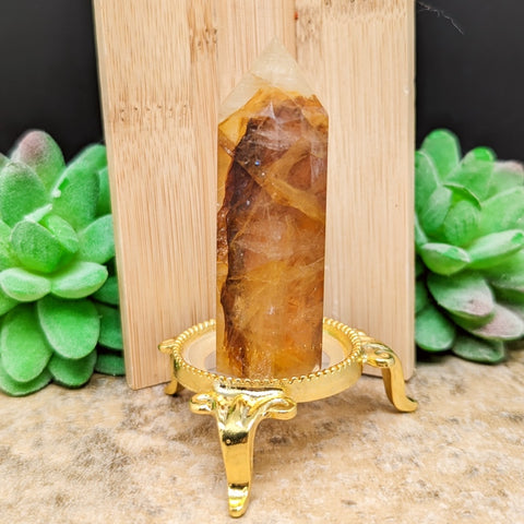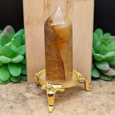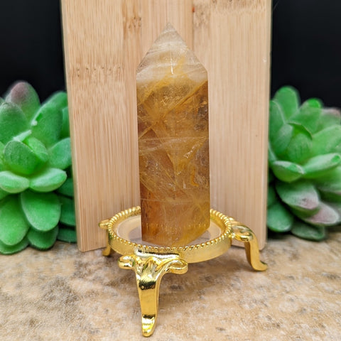Golden Healer Quartz Generator~CRGHQG01. A true “golden healer quartz,” is defined as quartz containing an iron oxide coating in between or underneath layers of crystal. Coloration can range from a clear, pale yellow to lemon to (darker) mustard. Golden Healer Quartz are master healers, helping one to access the gold ray, the highest vibration of light the human body can receive and sustain. It is said to raise the body's vibrational level to dissolve and release blockages or foreign energies. It is thought to facilitate spiritual and multidimensional communication and healing. It is said to access the Vibrational level of Christ consciousness. 63mm x 23mm x 19mm