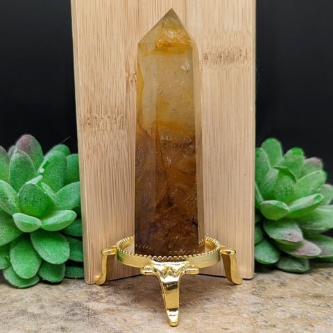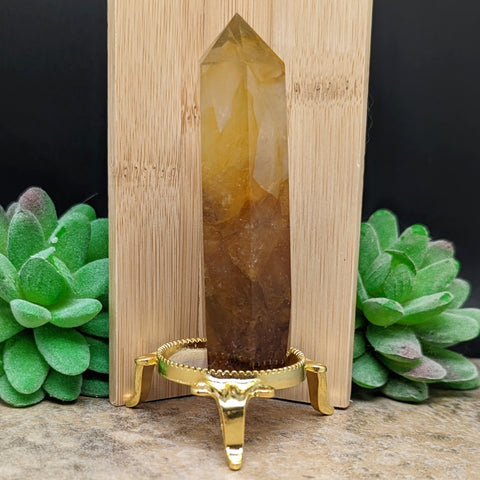 Golden Healer Quartz Generator~CRGHQG06. A true “golden healer quartz,” is defined as quartz containing an iron oxide coating in between or underneath layers of crystal. Coloration can range from a clear, pale yellow to lemon to (darker) mustard. Golden Healer Quartz are master healers, helping one to access the gold ray, the highest vibration of light the human body can receive and sustain. It is said to raise the body's vibrational level to dissolve and release blockages or foreign energies. It is thought to facilitate spiritual and multidimensional communication and healing. It is said to access the Vibrational level of Christ consciousness. 87mm x 25mm x 22mm