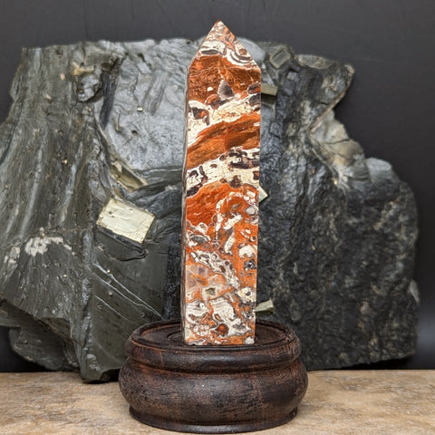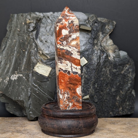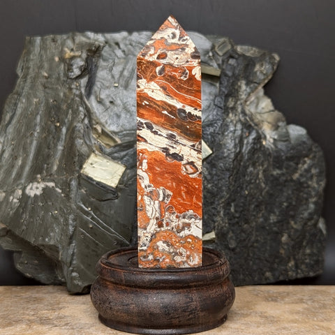 Mushroom Rhyolite Generator~CRMYAG12. Mushroom Rhyolite helps increase self-esteem, & in reducing nightmares & fear of the dark, strengthens the love between animals & children, brings harmony & peace to the family atmosphere, considered a mediator stone, helpful if you have conflict that needs resolution, helps one regain the feeling of being young at heart, assists one in maintaining balance in social areas & protects one from the negativity & depression of others, assists one in being more aware of ones surroundings, regarded as a protective stone from the “evil eye”, effective in removing the effects of black magic, help one adjust & better function on dark, dreary days, overcast days. 96mm x 24mm x 21mm