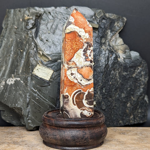Mushroom Rhyolite Generator~CRMYAG13. Mushroom Rhyolite helps increase self-esteem, & in reducing nightmares & fear of the dark, strengthens the love between animals & children, brings harmony & peace to the family atmosphere, considered a mediator stone, helpful if you have conflict that needs resolution, helps one regain the feeling of being young at heart, assists one in maintaining balance in social areas & protects one from the negativity & depression of others, assists one in being more aware of ones surroundings, regarded as a protective stone from the “evil eye”, effective in removing the effects of black magic, help one adjust & better function on dark, dreary days, overcast days. 89mm x 25mm x 26mm