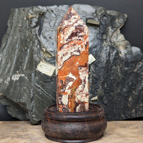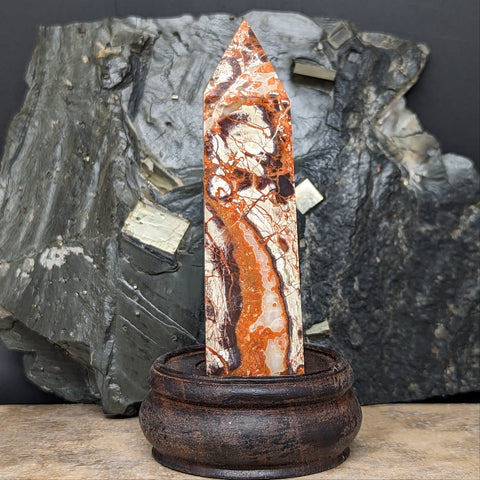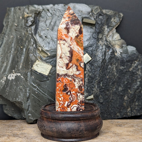 Mushroom Rhyolite Generator~CRMYAG14. Mushroom Rhyolite helps increase self-esteem, & in reducing nightmares & fear of the dark, strengthens the love between animals & children, brings harmony & peace to the family atmosphere, considered a mediator stone, helpful if you have conflict that needs resolution, helps one regain the feeling of being young at heart, assists one in maintaining balance in social areas & protects one from the negativity & depression of others, assists one in being more aware of ones surroundings, regarded as a protective stone from the “evil eye”, effective in removing the effects of black magic, help one adjust & better function on dark, dreary days, overcast days. 88mm x 26mm x 24mm