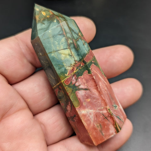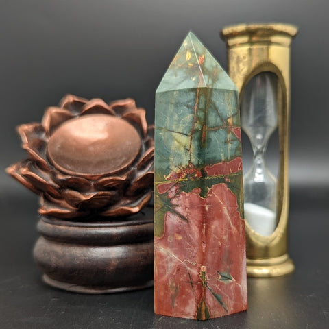 Red River Jasper Generator~CRRRJGN1. Red River Jasper, known as the "Supreme Nurturer”; provides support in times of stress or worry, an ally when one is desiring self-transformation or is seeking a new path, promotes organizational abilities, encourages relaxation, happiness, & tranquility, promotes compassion, protection, grounding, & self-discipline, facilitates shamanic journeys, dowsing, and dream recall. 85mm x 29mm x 29mm
