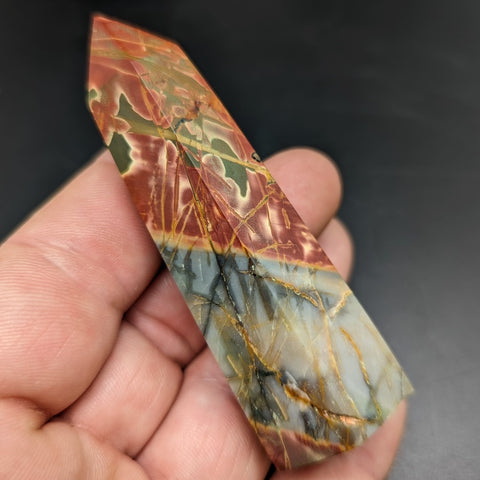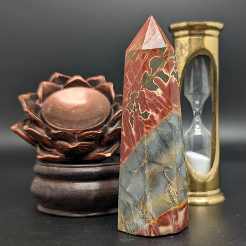 Red River Jasper Generator~CRRRJGN3. Red River Jasper, known as the "Supreme Nurturer”; provides support in times of stress or worry, an ally when one is desiring self-transformation or is seeking a new path, promotes organizational abilities, encourages relaxation, happiness, & tranquility, promotes compassion, protection, grounding, & self-discipline, facilitates shamanic journeys, dowsing, and dream recall. 89mm x 29mm x 25mm