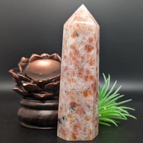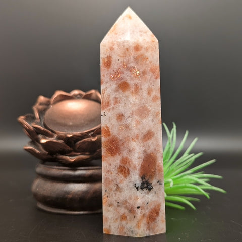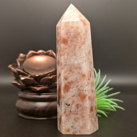 Sunstone Generator~ CRSUNGN6. Sunstone assists in restoring light and sweetness if life has lost its sparkle. It has been used in cutting cords, etheric attachments from other people. It is a stone of support and power, encouraging one to "take the reins", "lead the way", and "forge the path". It engenders a secure sense of abundance based in the confidence of the energetic support we receive from all of our "tribes" (family, friends, groups), irregardless of how far back in our (or their), lineage we have to go back to to access healthy support. 99mm x 32mm x 27mm