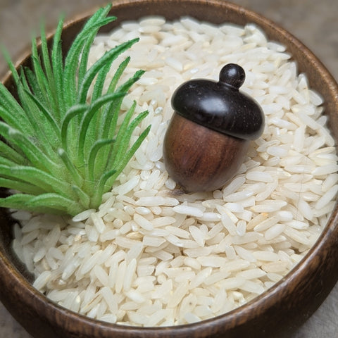 Abundance Acorns~CRACORNS. Wood Acorns filled with Peridot & Citrine chips. The acorn is a powerful symbol with rich meaning, representing potential, growth, strength, and good luck. It embodies the idea that great things can come from small beginnings, as it is the seed from which a mighty oak tree grows. Additionally, acorns are associated with protection, wisdom, and even immortality in various cultures. Peridot helps one activate & harmonize the third & fourth chakras, creating an integration of Love & Will, can assist us in having the courage to act out our heart's desires, a stone of financial & spiritual abundance, aids in attracting and creating our most important visions. Citrine is a stone of prosperity, manifestation & abundance, stimulates 2nd & 3rd chakras, initiates our creative energy & will reminding us that we are co-creators with Divine will, raises self esteem & self confidence, doesn’t retain negative energy, helps one dispense with the fundamental level of fear, soothes family or group problems, enhances mental clarity. One (1) Abundance Acorn. 31mm x 21mm x 21mm.