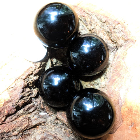 Black Obsidian Sphere-Large~ CRBOBSLG. Obsidian (volcanic glass)  is said to act to cleanse the energetic field or aura of disharmonious energy, densities, and negative attachments. It is thought to be very grounding and protective and also assist one in choosing behaviors that are only for one's highest good. Obsidian has also been used for scrying, or crystal gazing. One (1) Large Obsidian Sphere 40mm