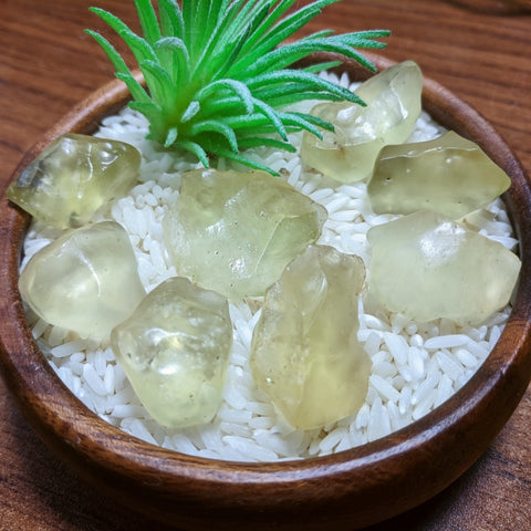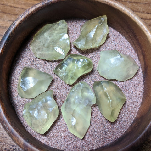 Libyan Gold Tektite~CRLGTLGT. Libyan Gold Tektite, also known as Libyan Desert Glass, like Moldavite, is a tektite, or Meteoric Impact glass created when meteors strike the Earth. It is considered the ‘Stone of the Truthful Soul’, a stone that help’s one to speak from the heart, to speak in that of love and of light, encourages one to see what is real around oneself, to see what need’s to be learnt from, what need’s to be accepted, a stone to take off the self-veil, to take away the mask of what one thought was or used as a sense of protection, in order to let in reality and truth, help’s to removing impurity from the mind and spirit, expunging that which could cause falsehoods or injustice, whether toward oneself, or toward other’s. One (1) piece Libyan Gold Tektite, size varies 5.7-5.8 grams each.