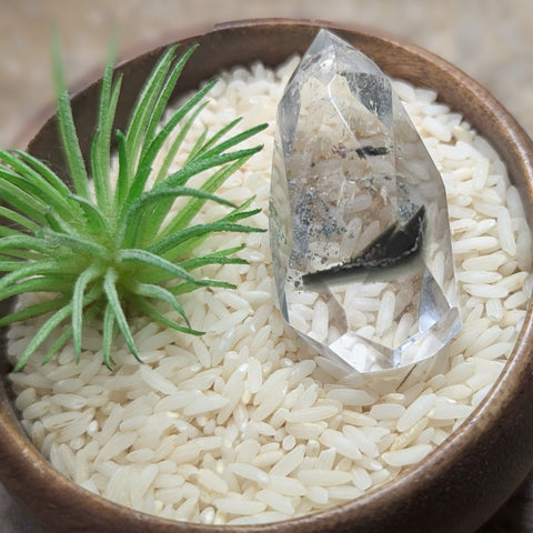 Lodolite Quartz Faceted Standing Gem ~CRLQFSG1. Lodalite Quartz, with inclusions, which can include Hematite (red), Calcite (White/Banding), or Chlorite (Green). Both Quartz & Calcite are energy amplifiers, helpful for grounding healing energy into the physical body, for enhancing ones strength, purity, and vitality, balances the auric field & aligns the chakras, highly programmable with ones clear intention, reminds one to “lie down in green pastures” and enjoy this “garden of eden” Quartz is an energy amplifier, providing power and clarity to the wearer. It is said to bring the energy of the stars into the soul. It is said to harmonize and align human energies. Quartz can be used to facilitate both speaking with, and receiving information from, the spiritual and other-worldly masters, teachers, and healers. It aids one in reaching and utilizing the talents and abilities of the mind. Quartz worn over the heart can help to clear emotional disturbances from ones being, and enhances self-acceptance and self-love. It also helps to purify the physical, emotional and spiritual bodies, and is a healer of negativity associated with ones perspectives and judgments. It aids one in directing ones energy to toward the spiritual realm, toward the light, love, and harmony of the planet, teaching one to live, laugh, and love with all brothers and sisters. One can "program" quartz with a prayer, making it a constant prayer generator, sending the message and energy of the prayer out into the heavens. The energy of quartz is asking you to clarify yourself so that the universe can provide you with the answers to your prayers. The message is that your are a reflection of the clarity of the Divine mind. 49mm x 27mm x 26mm.