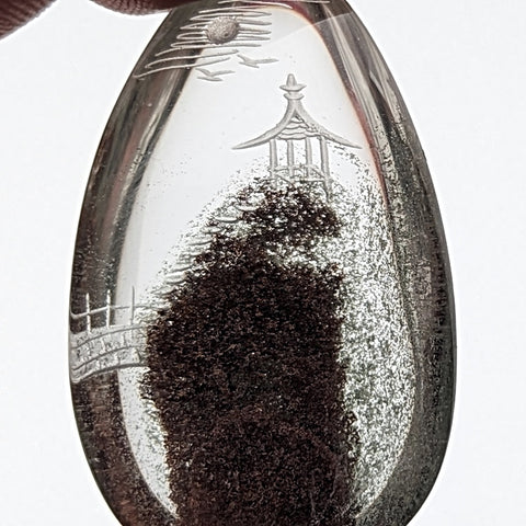 Etched Lodolite Quartz "Zen Retreat" Cabochon~CRLQZZRC. Lodolite quartz is clear quartz with inclusions of chlorite, calcite, hematite and/or limonite. It is an energy amplifier and transmitter. It is said to bring the energy of the stars into the soul. It is known for its clarity, healing, grounding, and connection to Earth Spirits and energies, reminding one to "lie down in green pastures" and enjoy this "garden of Eden". It can bring stability and comfort to ones life. It is a stone of strength, purity, virility and vitality, bringing enjoyment and enlightenment to our physical experience. Unicorns are strongly associated with the feminine and as such have traditionally appeared as a symbol of chastity, the divine power that nurtures all living things, and an emblem of the word of divine presence. Great for wire wrapping! 44mm x 27mm x 16mm