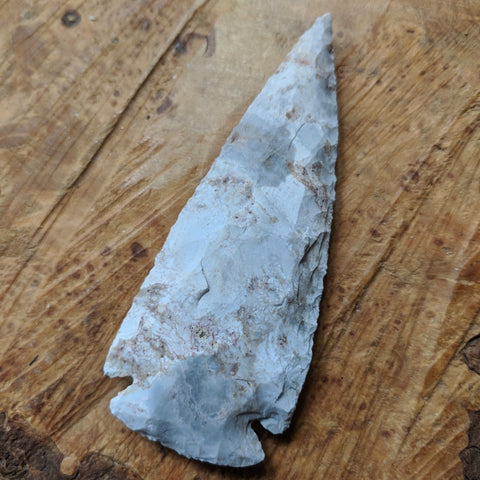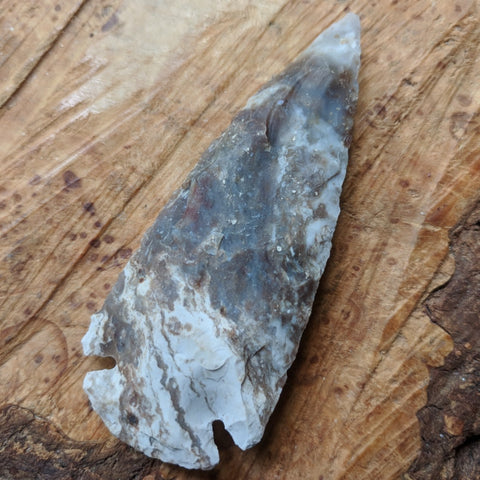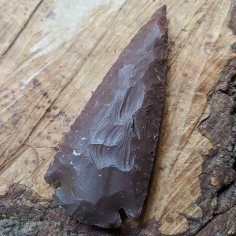 Modern Arrowhead -Jasper~CARROWM1. A quintessential Earth Stone, Jasper is deeply connected to the planet as “home,” and engenders security and protection, nurturing and healing. It promotes ecological awareness and is highly effective in alleviating geopathic and environmental stress. It cleanses the physical and emotional body of negative thought forms, and repairs the aura, bringing stability and balance. Its facilitates deep meditation and centering, and grants access to past lives for karmic healing. It helps to help keep one “down to earth,” and to alleviate stress and induce tranquility. It is particularly grounding, and has been used as a rescue stone for dissolving a sudden rush of fear, anger or panic. One (1) Medium Modern Jasper Arrowhead avg. size 82mm x 34mm x 14mm