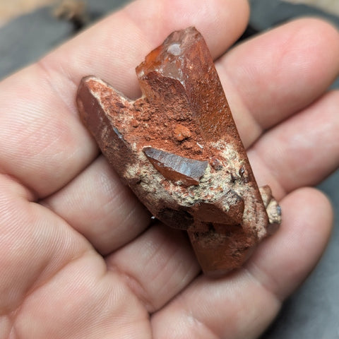 Red Hematoid Quartz Cluster~Tarya Mine, Morocco~CRRHQM17. Red Hematoid Quartz is the ‘Stone of the Seeker’, a key to open many doors within and all around, a stone that can be called upon when seemingly all else fails, or when there is confusion of what other crystal or mineral to connect with, it attracts its keeper to genuine source, a stone that helps stop one misjudging, as well as being misjudged, helps one to stand out of the crowd, to be different in a positive way, said to help diminish and lower negative and harmful rays or frequencies such as electro-magnetic fields and frequencies, also known as EMF. 52mm x 31mm x 25mm