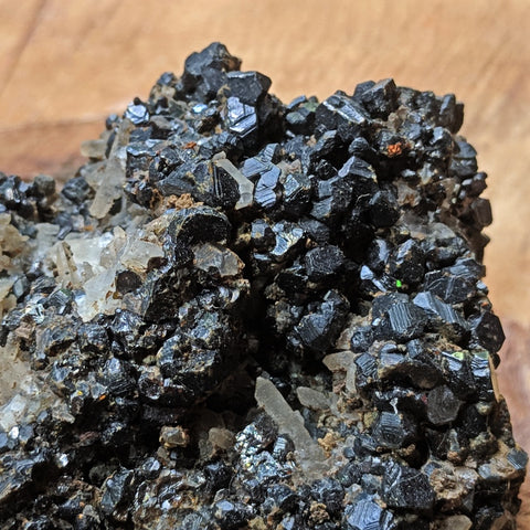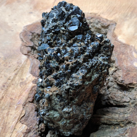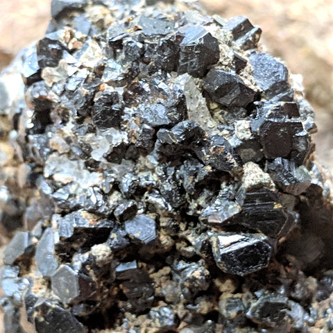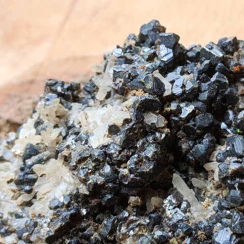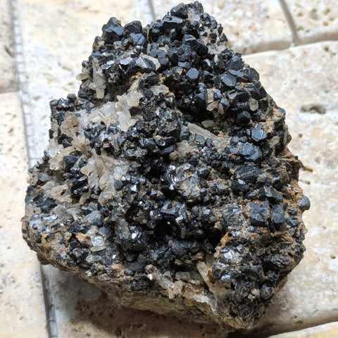 Sphalerite and Quartz- Rosas Mine, Sardinia, Itay. CRSPHAL01. Sphalerite is a stone used to balance yin and yang energies. It is said to enhance one's psychic abilities, while helping determine the accuracy of psychic information, one's own or that of others. It is thought to guide one along the path from a job, to a vocation, to one's destiny. Quartz is an an energy amplifier and transmitter, and is said to bring the energy and harmony of the stars into the soul. It is thought to facilitate communication with ascended masters, teachers, and healers. It can be programmed as a “constant prayer or intention generator”, sending our highest thoughts and wishes out to the Universe. 94mm x 79mm x 60mm