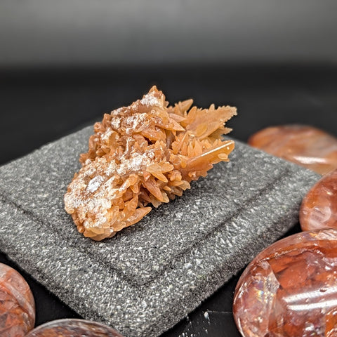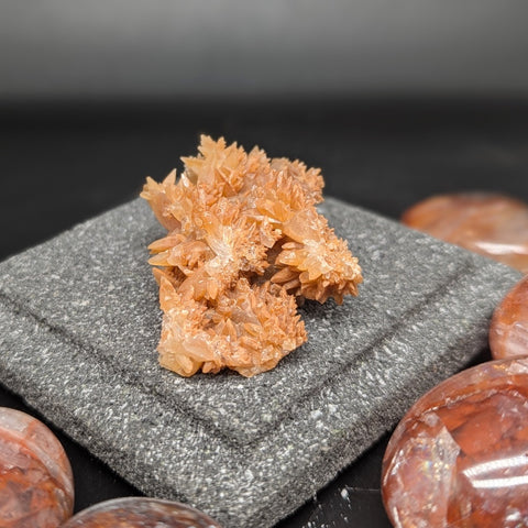 Spiky Red Dogtooth Calcite~CRSRDC02. Dogtooth Calcite is a variety of Calcite that forms as multiple scalenohedral crystals. It is known as the stone of emotional intelligence, it has an uncanny ability to build a clear and harmonious bridge of awareness between your emotions and your intellect. It brings wise energy to help one make timely decisions without the feeling of being rushed. It also helps cultivate equal attention to one's emotional and mental being. It is known as a stone of discernment. It helps us know which information is essential and retain this information. It is a powerful amplifier and cleanser of energy. It clears negative and stagnant energies from the environment. It facilitates the opening of higher consciousness and psychic abilities. It helps mind and body to remember soul experiences. 55mm x 38mm x 28mm.