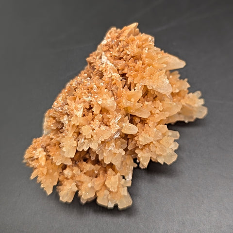Spiky Red Dogtooth Calcite~CRSRDC05. Dogtooth Calcite is a variety of Calcite that forms as multiple scalenohedral crystals. It is known as the stone of emotional intelligence, it has an uncanny ability to build a clear and harmonious bridge of awareness between your emotions and your intellect. It brings wise energy to help one make timely decisions without the feeling of being rushed. It also helps cultivate equal attention to one's emotional and mental being. It is known as a stone of discernment. It helps us know which information is essential and retain this information. It is a powerful amplifier and cleanser of energy. It clears negative and stagnant energies from the environment. It facilitates the opening of higher consciousness and psychic abilities. It helps mind and body to remember soul experiences. 64mm x 51mm x 45mm.