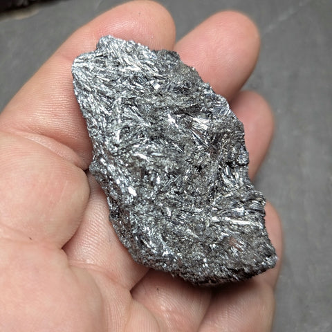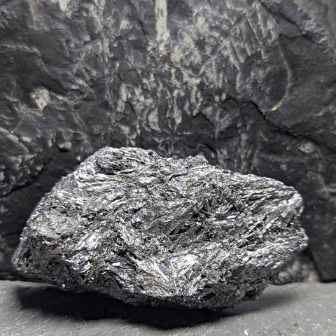 Stibnite Cluster~China~CRSTIB02. Stibnite is the totem stone of Wolf medicine, magnetizes experiences, people, and synchronicities to fulfilling ones highest intentions, assists one in shifting into resonance with the high frequency energy we are now being asked to carry in our bodies and in counteracting the symptoms of those energy shifts, can help release fear of spiritual exploration, cleanses emotional debris. 65mm x 34mm x 32mm