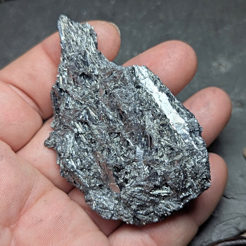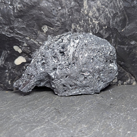 Stibnite Cluster~China~CRSTIB08. Stibnite is the totem stone of Wolf medicine, magnetizes experiences, people, and synchronicities to fulfilling ones highest intentions, assists one in shifting into resonance with the high frequency energy we are now being asked to carry in our bodies and in counteracting the symptoms of those energy shifts, can help release fear of spiritual exploration, cleanses emotional debris. 78mm x 48mm x 21mm