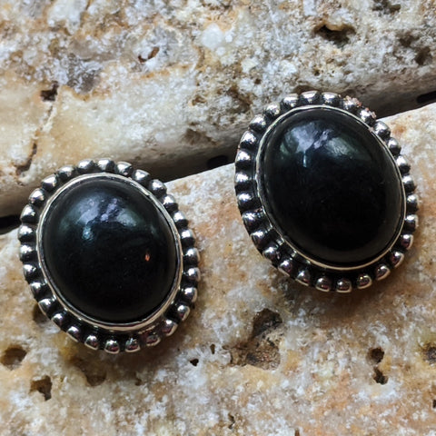 Sterling Silver Large Black Tourmaline Post Earrings- JSSBTER1. Black Tourmaline is ideal for energetic purification and protection for anyone exposed to negativity. It clears oneself and one’s surroundings of dense energies and disharmony. It can connect one to the magnetic field of the Earth, grounding out negative thoughts, anxieties, and anger. It provides an energy similar to an "energetic housecleaning", like that of smudging, that is vitally important to anyone who strives for connection to their spiritual path. One can only ascend by being grounded. It has been used by shamans worldwide to awaken from illusion. 16mm x 14mm x 8mm