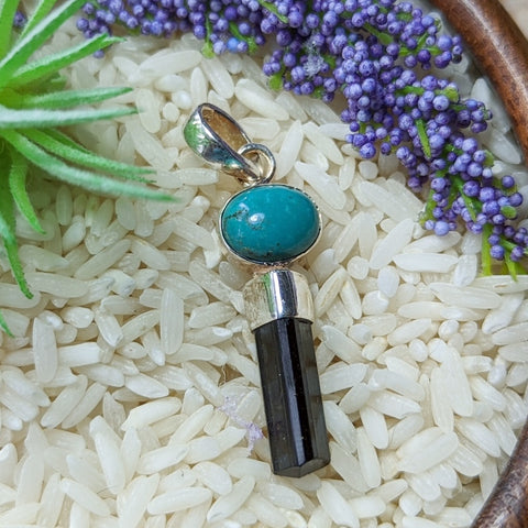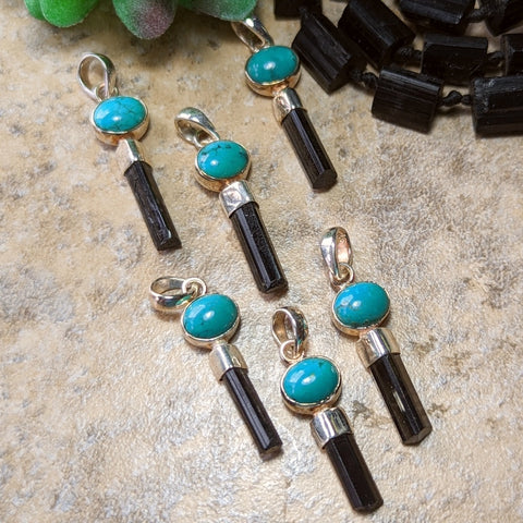 Black Tourmaline & Turquoise Pendant- JSSBTTUR