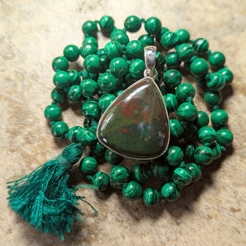 Sterling Silver Bloodstone Pendant~India~JJSSBLOOD. Bloodstone is an intense healing stone and a "stone of courage". It helps one to accept the change in energy fields, and to recognize the beneficial aspects of turmoil prior to perfection. It also provides one with the centering and grounding of the heart, and is conducive to balancing the total body in order to overcome any distress and anxiety which is associated with the re-alignment of the energies. The message of bloodstone is to "be here now". It provides for the revitalization of love, relationships, and friendships. It is said to improve ones talents and abilities, to enhance creative efforts, to support decision making processes, and to provide for insight into the immediate spiritual intuition of truths which transcend ordinary understanding. True courage is the strength of mind and spirit needed to take the action dictated to you by your heart. This is the path of the spiritual warrior, to act upon your inner guidance. 43mm X 26mm X 7mm