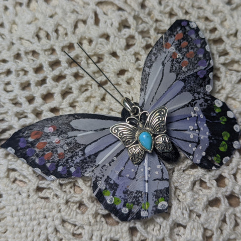 Sterling Silver Larimar Butterfly Pendant~JSSBLARP Larimar~”Nurture”. The energy of Larimar is summed up by the female aspect of Spirit supporting the child within in her arms. In a sea of emotion, the child is held protectively, yet is cleansed of all impurities. This female aspect and child live within all of us, aiding us when we are in need of deep comfort and support. This is the energy of Larimar. Larimar, also known as blue pectolite or dolphin stone, ranges in color between a vibrant turquoise blue and pale green. Larimar is found in the Dominican Republic, and it reflects the colors and energies of he Caribbean Sea. Larimar is volcanic in origin, yet it exudes a nurturing cool vibration that lends itself wonderfully to tempering excess fire in one's energy. This Ally helps one to feel cradled in the arms of protection and love, while it encourages the cleansing and movement of energy throughout the body and aura. Larimar embodies the perseverance of the Water element. While fire may burn hot, it burns fast and water can always put it out. Where there is infection or any other 'hot' condition, Larimar's healing and soothing energies can be called upon to calm and cool the energies. Larimar carries the vibration of nurturing. This energy creates the sensation that one is being comforted and cared for by the Great Earth Mother. Its water energy provides the comfort of the ocean of the womb. When one is feeling the need for deep cleansing and protection, a water healing can greatly aid in recovering one's sense of connection to the Great Mother. Water healing can mean relaxing in a hot tub to sooth frazzled nerves, taking swim in the ocean, or even crying, one of the most cleansing and clearing things we can do to release "hot " energy. As adults we do not always get the nurturing and support that we need. The energy of Larimar is a wonderful Ally to call upon when the need for retreat to the womb is upon you. When Larimar is calling you, it is time to reconnect to the energies of the nurturing, female aspect of yourself and the Universe. Now is not the time for strong movement, but for retreat into the gentle flow of nature. Perhaps you have been pushing yourself too hard or too long. Maybe you just need a break from the heat of everyday life. Larimar is calling you to cool and soothe your energy. Drink some water, take a bath or have a good cry. Then curl up and dream of the blue ocean and azure sky. Listen to the frequency of Larimar in your heart, as it sings you to sleep with the voice of the Great Mother Earth. “I am supported and nurtured by the Energy of the Universe.” 30mm x 25mm x 5mm