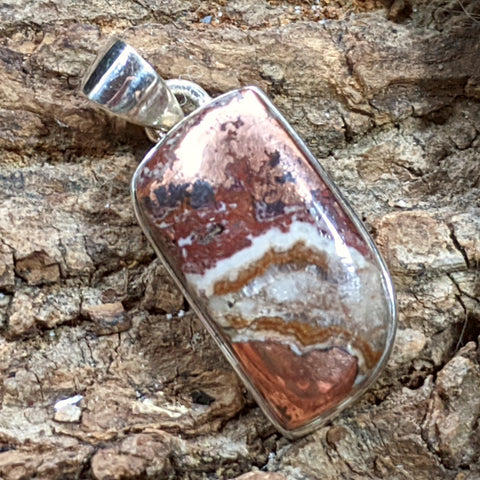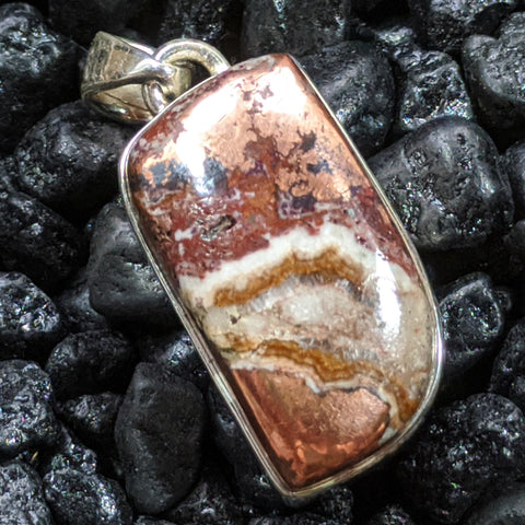 Sterling Silver Copper in Quartz Pendant~ JSSCPRQZ~ Copper is naturally antimicrobial. Copper is said to assist in the practice of channeling energies. It has a profound impact on and resonance with the Feminine trinity, Maiden, Mother, Crone, and in particular the Grandmotherly wisdom and strength of the Crone. It can assist one in connecting to the healing power of one’s feminine ancestral lineage, and draw on their shared experience and wisdom regarding issues concerning fertility, sexuality, and even our sometimes negative inner dialog and resulting feelings. It is an excellent activator of the first two chakras. Quartz is an energy amplifier, said to bring the energy of the stars into the soul. It is considered a stone of harmony, and is thought to facilitate communication with spiritual and other-worldly masters, teachers, & healers. Quartz can be programmed as a constant prayer or intent generator. 36mm x 15mm x 8mm
