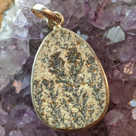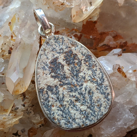Sterling Silver Dendritic Jasper Pendant~JSSDJSP1. Dendritic Jasper can be used in meditation to merge with the consciousness of the Earth, one can also connect with the energy of sacred places around the globe. It can facilitate all manner of inner journeying, and resonates with seeing through “illusion”. It stimulates the “Earth Angels" to lovingly, creatively, and efficiently work together to save the planet. Carnelian is said to create an environment of calm, connection, stability, and love radiating out from oneself, through one's home and family. It can enhance mental processes and talents, and stimulate the motivation to take action on that guidance. It is thought to assist one in the analysis of the programming one has received from the various "tribes" one has been influenced by (family, friends, coworkers, churches, associations etc.), and in choosing which characteristics to maintain and which to eliminate. 40mm X 21mm X 6mm