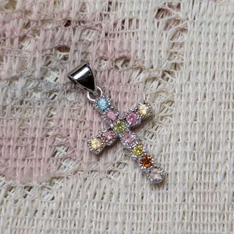 Faceted Mixed Tourmaline Cross Pendant~JMTSSP09