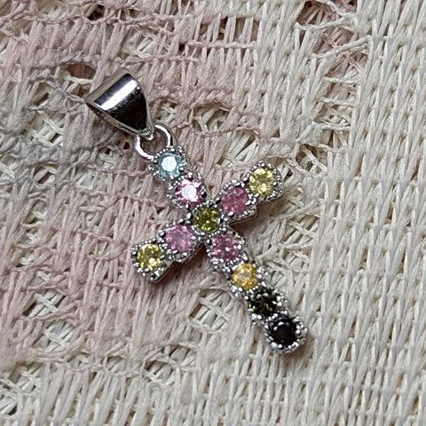 Faceted Mixed Tourmaline Cross Pendant~JMTSSP10