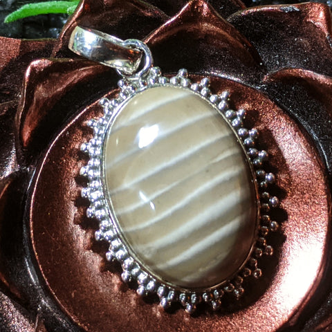 Sterling Silver Flint (Madagascar) Pendant~JSSFLNT1. Flint is an excellent choice for use in activities related to thought transference; one may transfer information, ideas, and loving emotional messages to another AND receive, in return, the touching interpersonal experiences of the energy of the universe. It can help to relieve shyness, and to promote both intimate and personal experiences. It also assists one in severing the emotional ties through which one is attached to problems and distressful situations. It has been revered by the ancient tribes to produce protective energy and to dispel negativity from “haunted” localities. It assists one in viewing the unknown, providing for insight into the methods by which to oppose contrary forces. 41mm x 23mm x 9mm