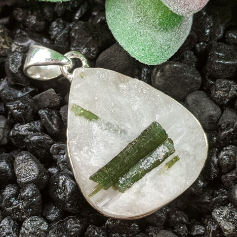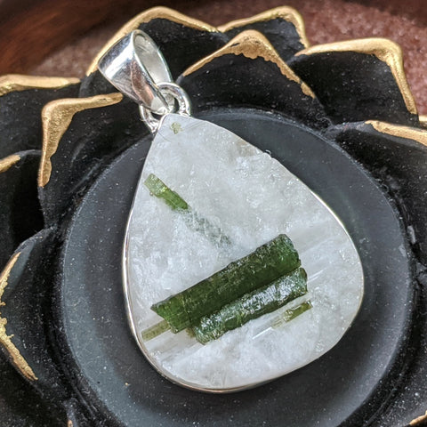 Green Tourmaline in Quartz Pendant~JSSGTQP3