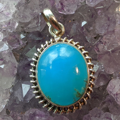 Sterling Silver Hemimorphite Pendant~ JSSHEMP1. Hemimorphite manifests the energy of well-being on many levels. It brings balance to one’s auric field, dissolving and dispelling dark spots of negativity or weakness. It can further enhance one's self-esteem, and allows one to take responsibility for creating ones personal reality. It assists in growing toward an humble self-confidence and self-respect. It enhances the communication of the truth of one's feelings and can help in the healing of dysfunctional relationships. It is a powerful stone for forgiveness, release of resentment or anger, and the healing of karmic ties between people, harmonizing well with dioptase. It can help one to understand and to utilize the powerful ancient techniques of healing. 33mm x 19mm x 8mm