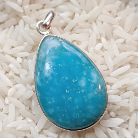 Sterling Silver Hemimorphite Pendant~ JSSHEMP3. Hemimorphite manifests the energy of well-being on many levels. It brings balance to one’s auric field, dissolving and dispelling dark spots of negativity or weakness. It can further enhance one's self-esteem, and allows one to take responsibility for creating ones personal reality. It assists in growing toward an humble self-confidence and self-respect. It enhances the communication of the truth of one's feelings and can help in the healing of dysfunctional relationships. It is a powerful stone for forgiveness, release of resentment or anger, and the healing of karmic ties between people, harmonizing well with dioptase. It can help one to understand and to utilize the powerful ancient techniques of healing. 33mm x 19mm x 8mm