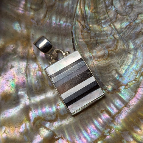 Intarsia Black Onyx & Abalone Pendant~JSSBONAB
