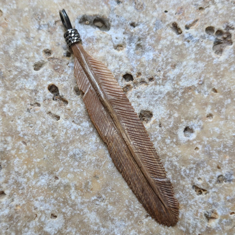 Sterling Silver Carved Mammoth Ivory Feather Pendant JPMIFE01. Mammoth ivory is between 10,000 and 50,000 years old. 66mm x 12mm x 7mm