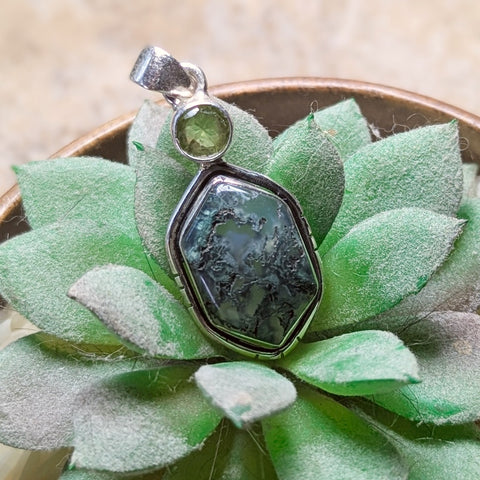 Moss Agate & Peridot Pendant~JSSMAPP1