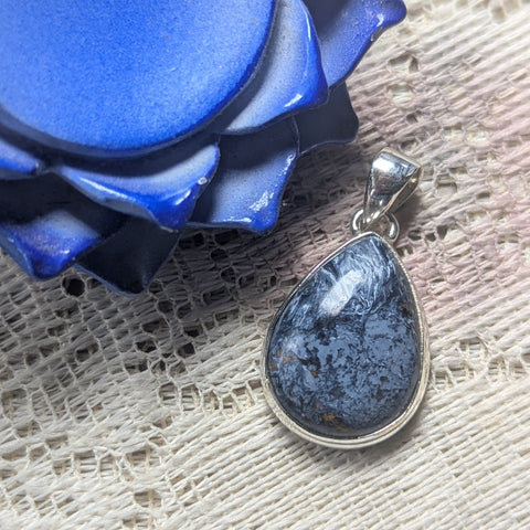 Sterling Silver Pietersite Pendant~JSSPIET1. Pietersite helps clear stagnant energies, habits, and patterns from ones life, helping one become “unblocked” and “unstuck”, encourages one to take action towards ones dreams, enhances clarity of thought and sharpens ones intuition, enhances clarity when using tarot and other “oracles”. One Pietersite Pendant. 35mm x 18mm x 7mm