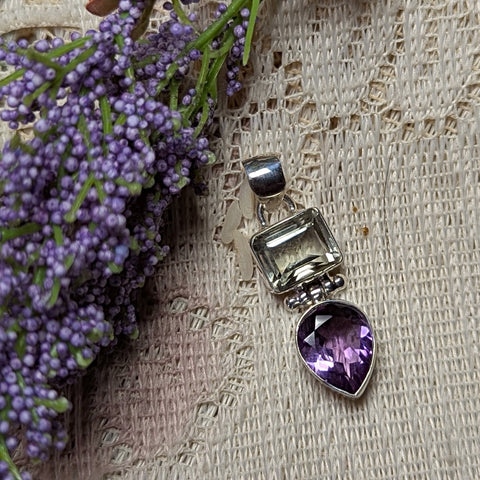 Prasiolite & Amethyst Pendant~JSSPRAS2