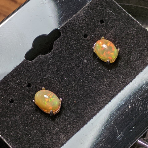 Sterling Silver Precious Opal Post Earrings~JSSPOE04. Opal acts as a prism within the aura, bringing a full spectrum of Light energy to the system, soothing and clearing the emotional body, and boosting the will to live and the joy of one’s earthly existence. It enkindles optimism, enthusiasm and creativity, and allows for the release of inhibitions inspiring love and passion. Opal enhances cosmic consciousness and stimulates flashes of intuition and insight, yet is a protective stone for deep inner work, meditations, and lower world shamanic journeys. 7mm x 5mm