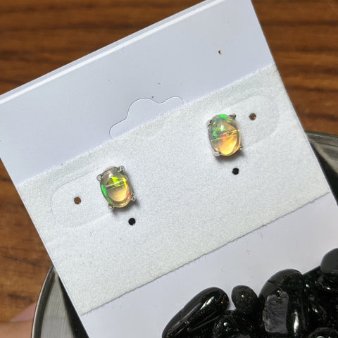Sterling Silver Precious Opal Post Earrings~JSSPOE08. Opal acts as a prism within the aura, bringing a full spectrum of Light energy to the system, soothing and clearing the emotional body, and boosting the will to live and the joy of one’s earthly existence. It enkindles optimism, enthusiasm and creativity, and allows for the release of inhibitions inspiring love and passion. Opal enhances cosmic consciousness and stimulates flashes of intuition and insight, yet is a protective stone for deep inner work, meditations, and lower world shamanic journeys. 7mm x 5mm