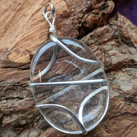Tarnish-Free Silver Plated Copper Wire Wrapped Quartz Pendant~ JSPQTZP3. Quartz is an energy amplifier, providing power and clarity to the wearer. It is said to bring the energy of the stars into the soul. It is said to harmonize and align human energies. Quartz can be used to facilitate both speaking with, and receiving information from, the spiritual and other-worldly masters, teachers, and healers. It aids one in reaching and utilizing the talents and abilities of the mind. Quartz worn over the heart can help to clear emotional disturbances from ones being, and enhances self-acceptance and self-love. It also helps to purify the physical, emotional and spiritual bodies, and is a healer of negativity associated with ones perspectives and judgments. It aids one in directing ones energy to toward the spiritual realm, toward the light, love, and harmony of the planet, teaching one to live, laugh, and love with all brothers and sisters. One can "program" quartz with a prayer, making it a constant prayer generator, sending the message and energy of the prayer out into the heavens. The energy of quartz is asking you to clarify yourself so that the universe can provide you with the answers to your prayers. The message is that your are a reflection of the clarity of the Divine mind. Approx.. 54mm x 30mm x 10mm