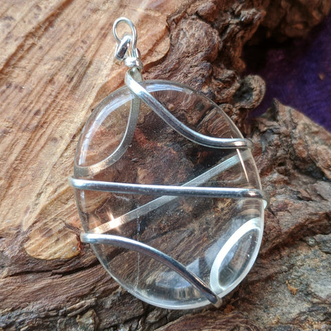 Tarnish-Free Silver Plated Copper Wire Wrapped Quartz Pendant~ JSPQTZP4. Quartz is an energy amplifier, providing power and clarity to the wearer. It is said to bring the energy of the stars into the soul. It is said to harmonize and align human energies. Quartz can be used to facilitate both speaking with, and receiving information from, the spiritual and other-worldly masters, teachers, and healers. It aids one in reaching and utilizing the talents and abilities of the mind. Quartz worn over the heart can help to clear emotional disturbances from ones being, and enhances self-acceptance and self-love. It also helps to purify the physical, emotional and spiritual bodies, and is a healer of negativity associated with ones perspectives and judgments. It aids one in directing ones energy to toward the spiritual realm, toward the light, love, and harmony of the planet, teaching one to live, laugh, and love with all brothers and sisters. One can "program" quartz with a prayer, making it a constant prayer generator, sending the message and energy of the prayer out into the heavens. The energy of quartz is asking you to clarify yourself so that the universe can provide you with the answers to your prayers. The message is that your are a reflection of the clarity of the Divine mind. Approx.. 54mm x 30mm x 10mm
