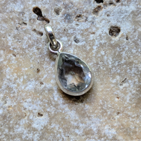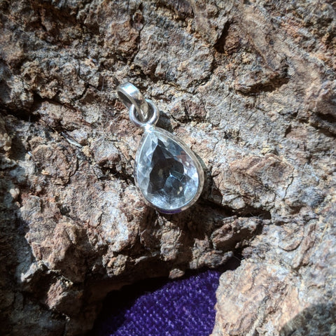Sterling Silver Faceted Super Clear Quartz Pendant~JSCQTZP3. Quartz is an energy amplifier, providing power and clarity to the wearer. It is said to bring the energy of the stars into the soul. It is said to harmonize and align human energies. Quartz can be used to facilitate both speaking with, and receiving information from, the spiritual and other-worldly masters, teachers, and healers. It aids one in reaching and utilizing the talents and abilities of the mind. Quartz worn over the heart can help to clear emotional disturbances from ones being, and enhances self-acceptance and self-love. It also helps to purify the physical, emotional and spiritual bodies, and is a healer of negativity associated with ones perspectives and judgments. It aids one in directing ones energy to toward the spiritual realm, toward the light, love, and harmony of the planet, teaching one to live, laugh, and love with all brothers and sisters. One can "program" quartz with a prayer, making it a constant prayer generator, sending the message and energy of the prayer out into the heavens. The energy of quartz is asking you to clarify yourself so that the universe can provide you with the answers to your prayers. The message is that your are a reflection of the clarity of the Divine mind. 25mm x 12mm x 7mm