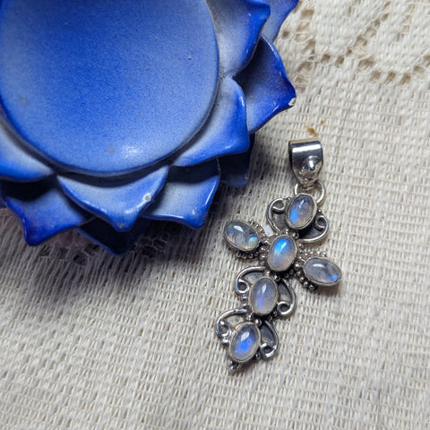 Rainbow Moonstone Cross Pendant~JSSRMP06