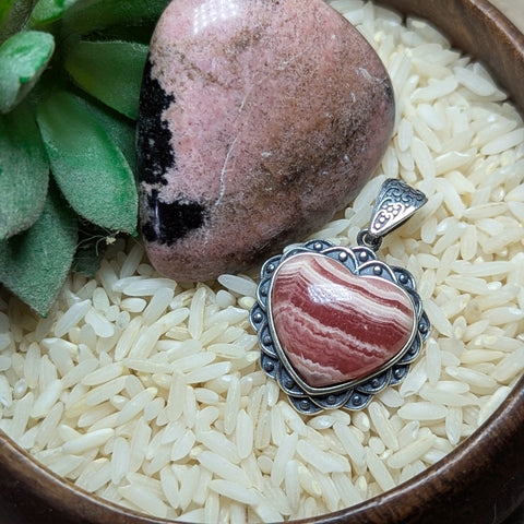 Rhodochrosite Heart Pendant~JSSRHOH3